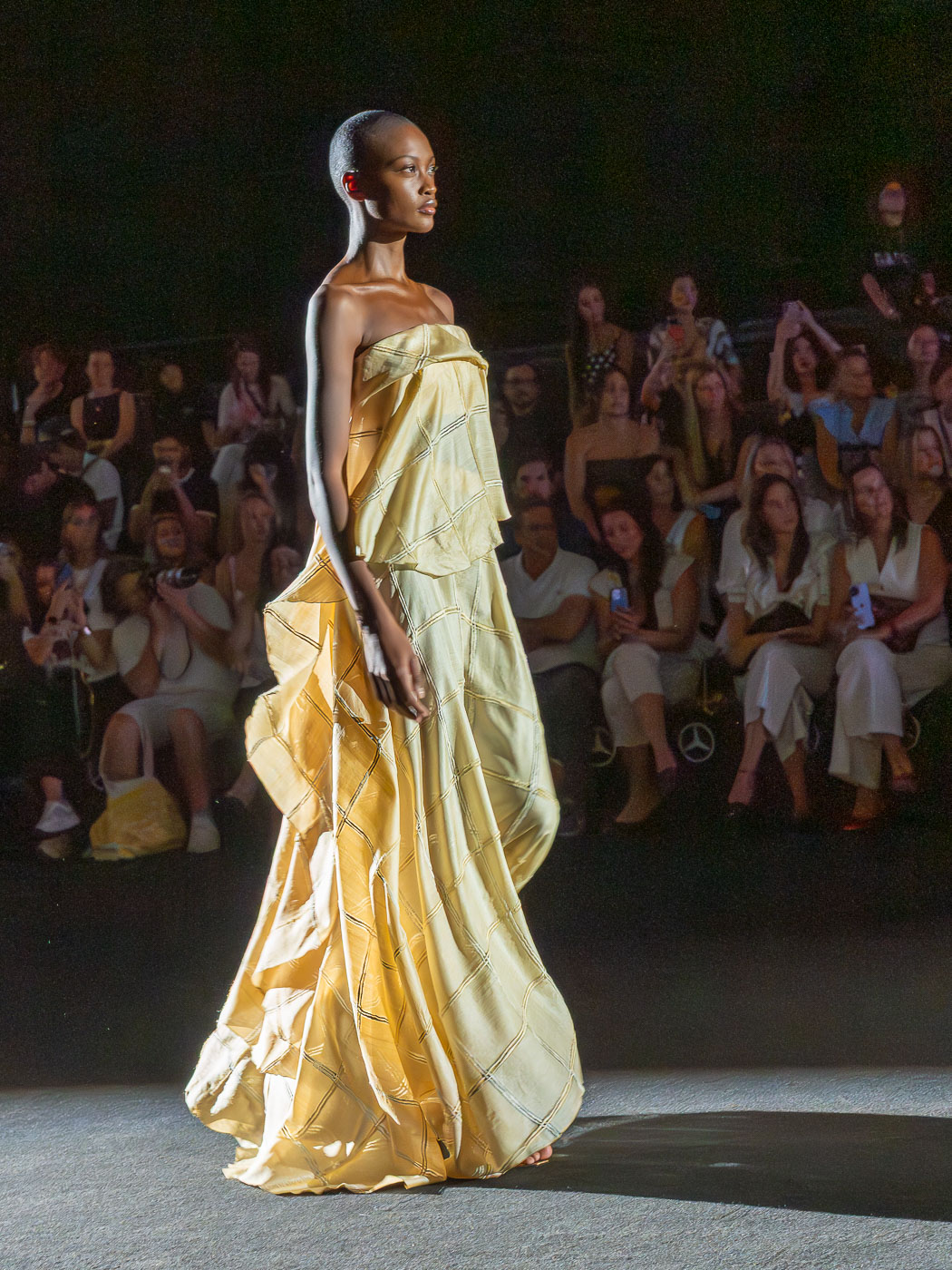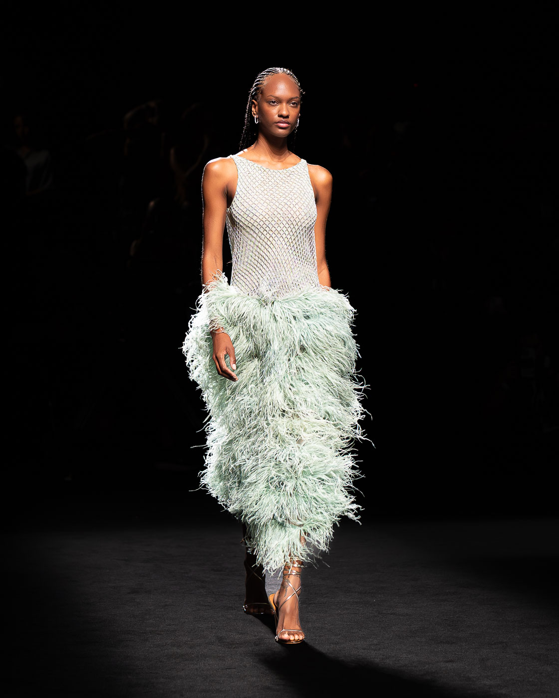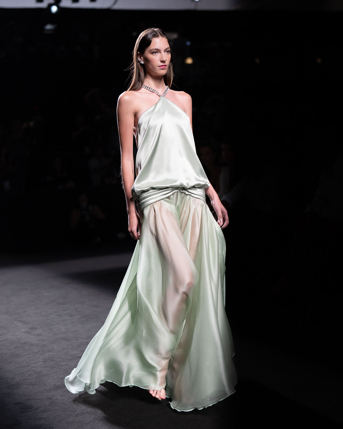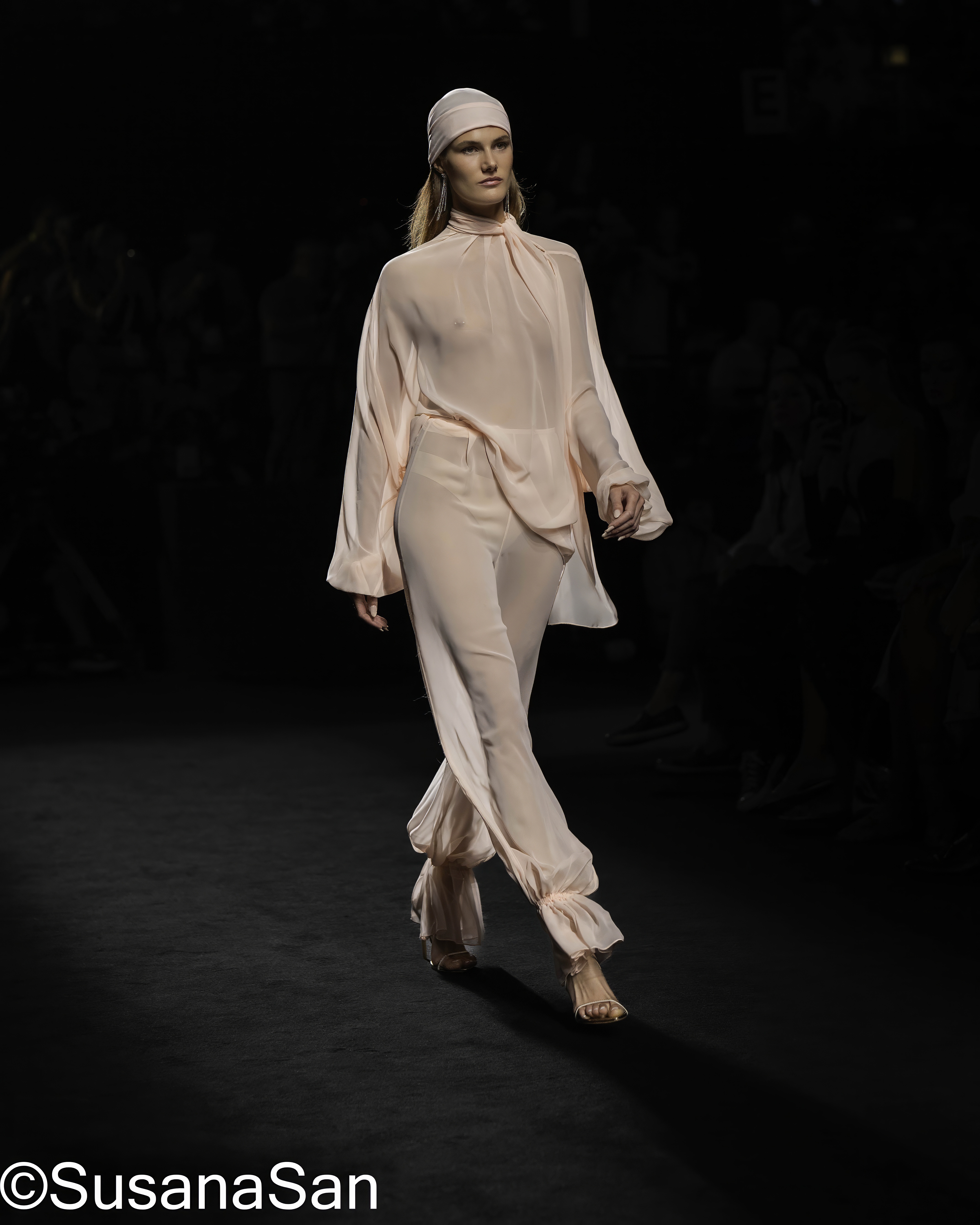 Tejidos ligeros, cortes depurados y drapeados estudiados convivieron con accesorios audaces, volúmenes inesperados y detalles que atrapaban la mirada. Cada conjunto parecía pensado para capturar la esencia de un estilo de vida aspiracional, sin perder la cercanía y la frescura que caracterizan a la moda española.